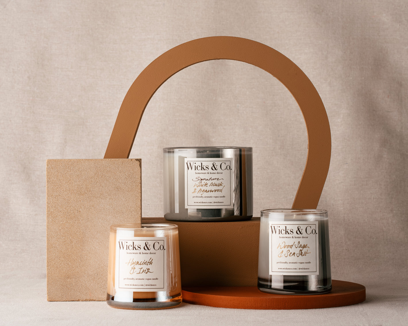 Shop Wicks & Co.'s individually handpoured, aromatic vegan candles.